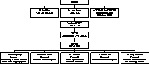 The organisational structure of the Centre is outlined below. The management structure consists of the Board and the Director. The Board and Director are advised by Committees and supported by an administration office dealing with administrative and financial activities. The Board is responsible for the strategic direction of the Centre and for ensuring Centre management. The Director is responsible for day-to-day operations of the Rice CRC. He is assisted by a Management Committee, which includes key staff, and Program Leaders. The Rice Research and Development Committee of RIRDC is an advisory committee to the Rice CRC. The Centre Agent is NSW Agriculture and it provides financial and research program/project service and support for the Centre. The Centre's administrative office is located at the Yanco Agricultural Institute (NSW Agriculture).