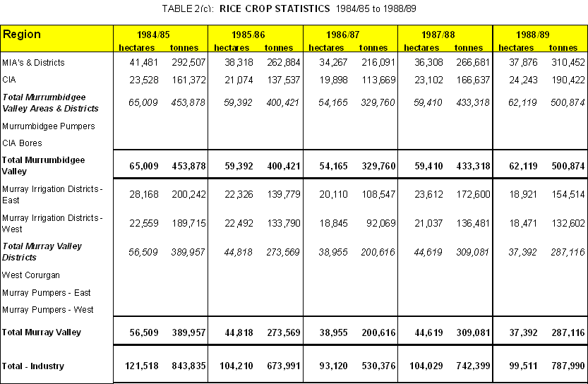 Full statistics on regional rice production are included in Tables 2(a), 2(b) and 2(c).